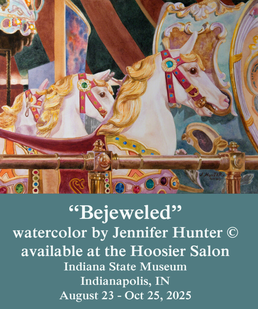 Jennifer Hunter with her painting “Bejeweled” at the 2025 Hoosier Salon, Indiana State Museum, Indianapolis, IN
